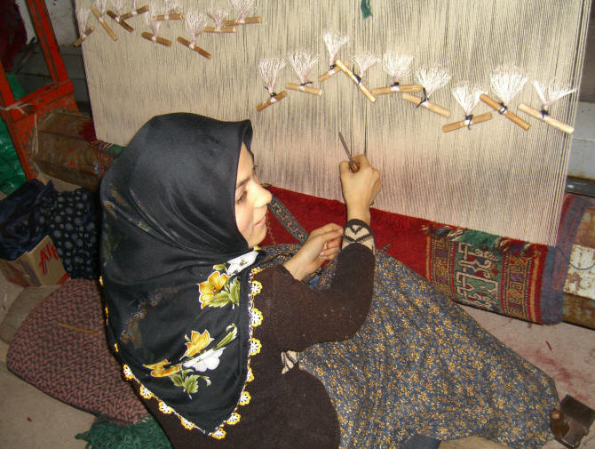 The weaver Akile working on a Bellini carpet in Afyon.