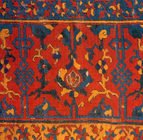 curvilinear large format Ushak designs with their predecessors, the Lotto and Holbein, as well as with Timurud and Seljuk carpets. |