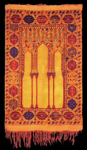 The inspiration for our design is a carpet in the Budapest Museum of Applied Arts, a luminous yellow rug, which truly has a sense of an inner light, reinforced by the sensuous red fringes.